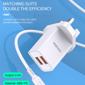 ● Dual USB Ports: Charge two devices at the same time with a 2.4A maximum output.