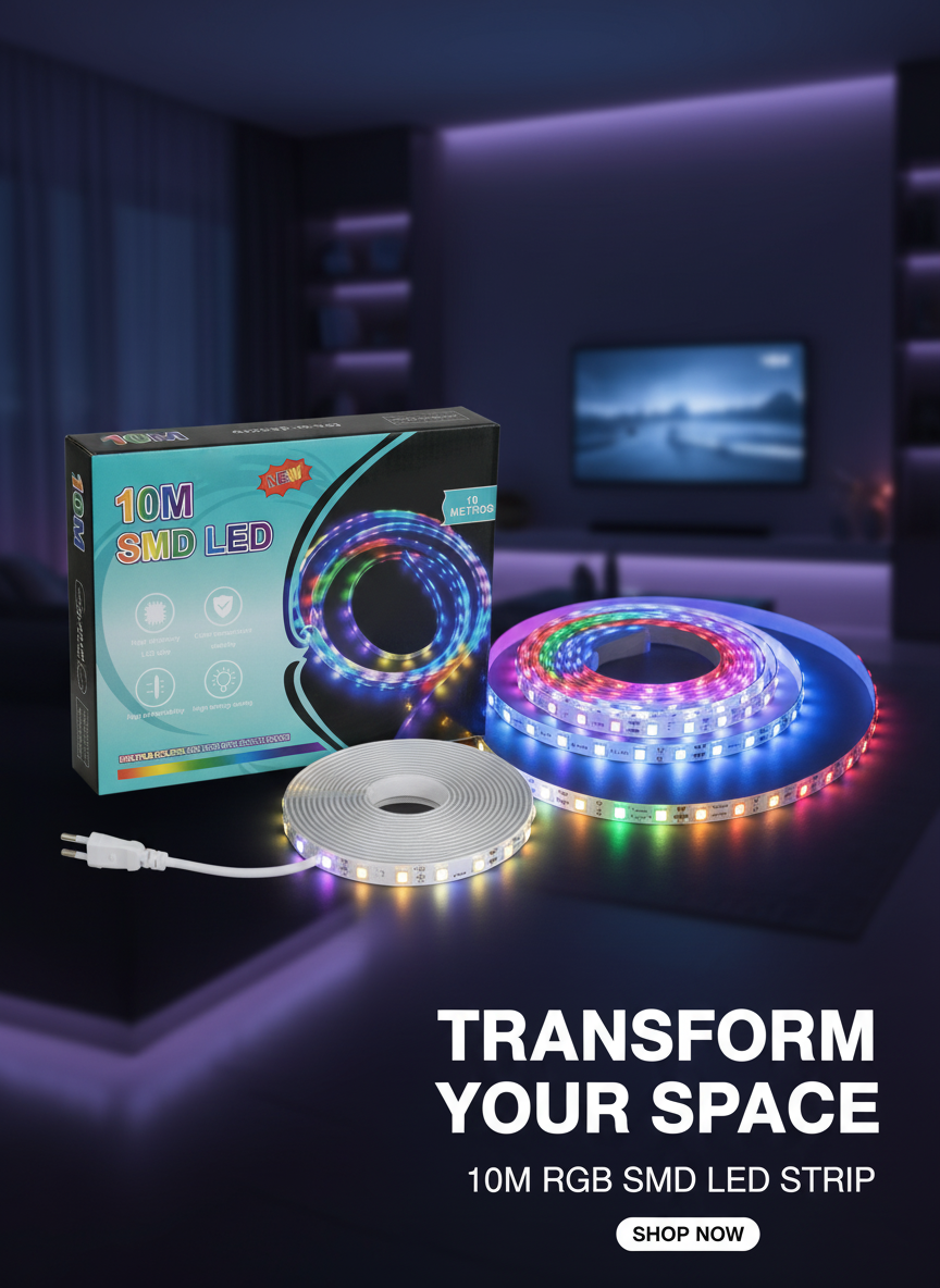 Be the first to review “10 Meter RGB SMD LED Strip Light – Flexible, Color Changing, High Brightness, Decorative Lighting (10M)”