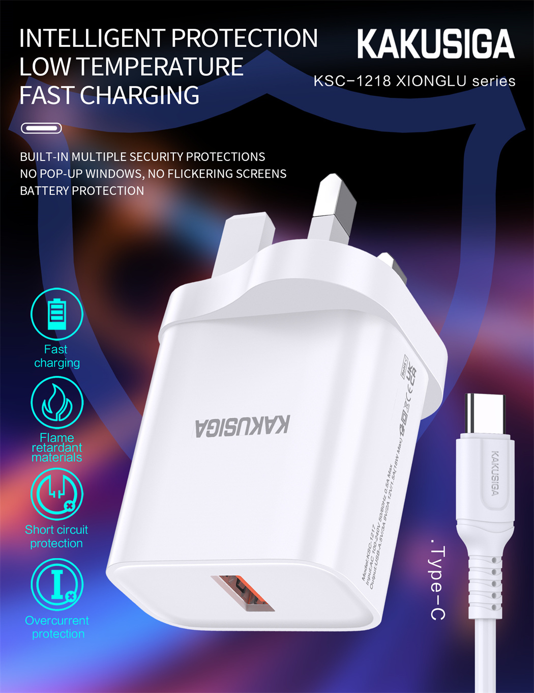 ● 18W Fast Charging – Supports multiple voltage outputs (DC5V/3A, 9V/2A, 12V/1.5A) for optimized power delivery