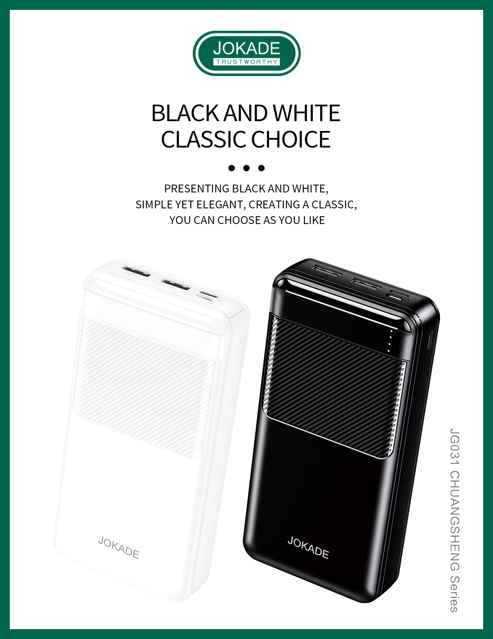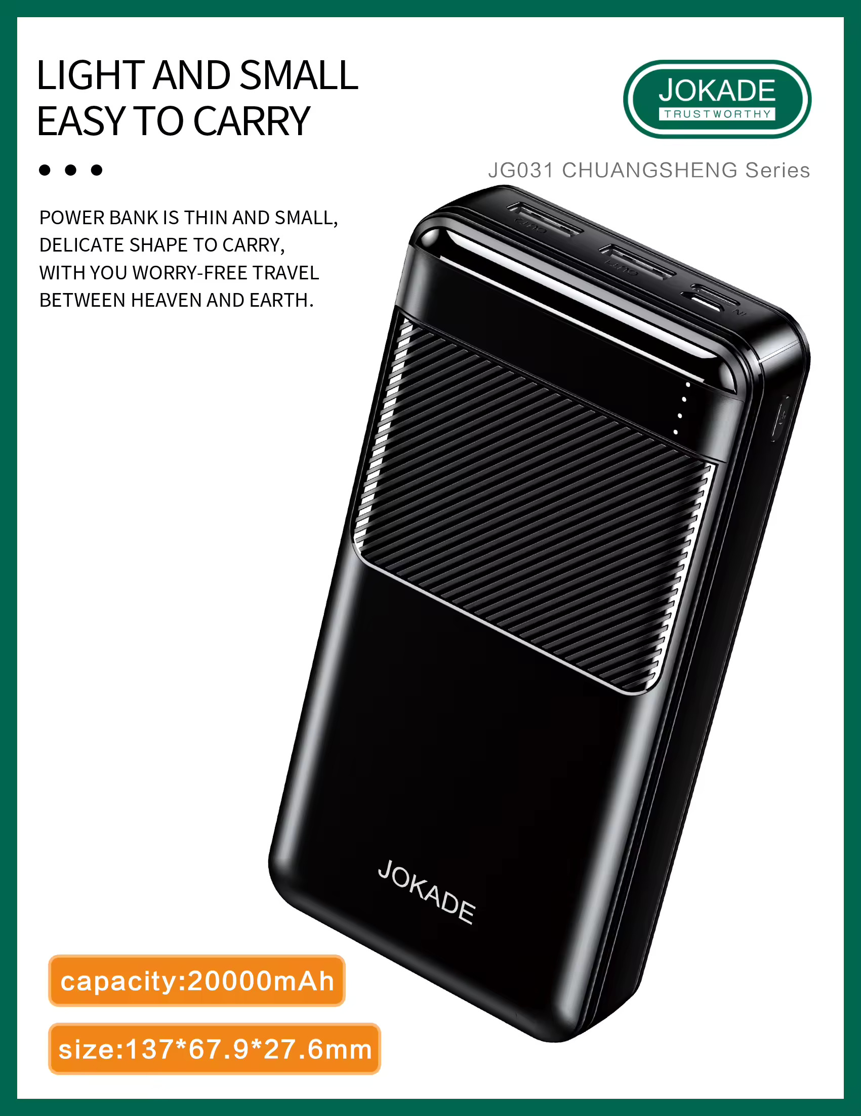 Stay powered anytime, anywhere with the JOKADE JG031 20000mAh Power Bank.