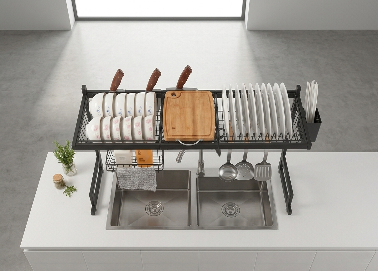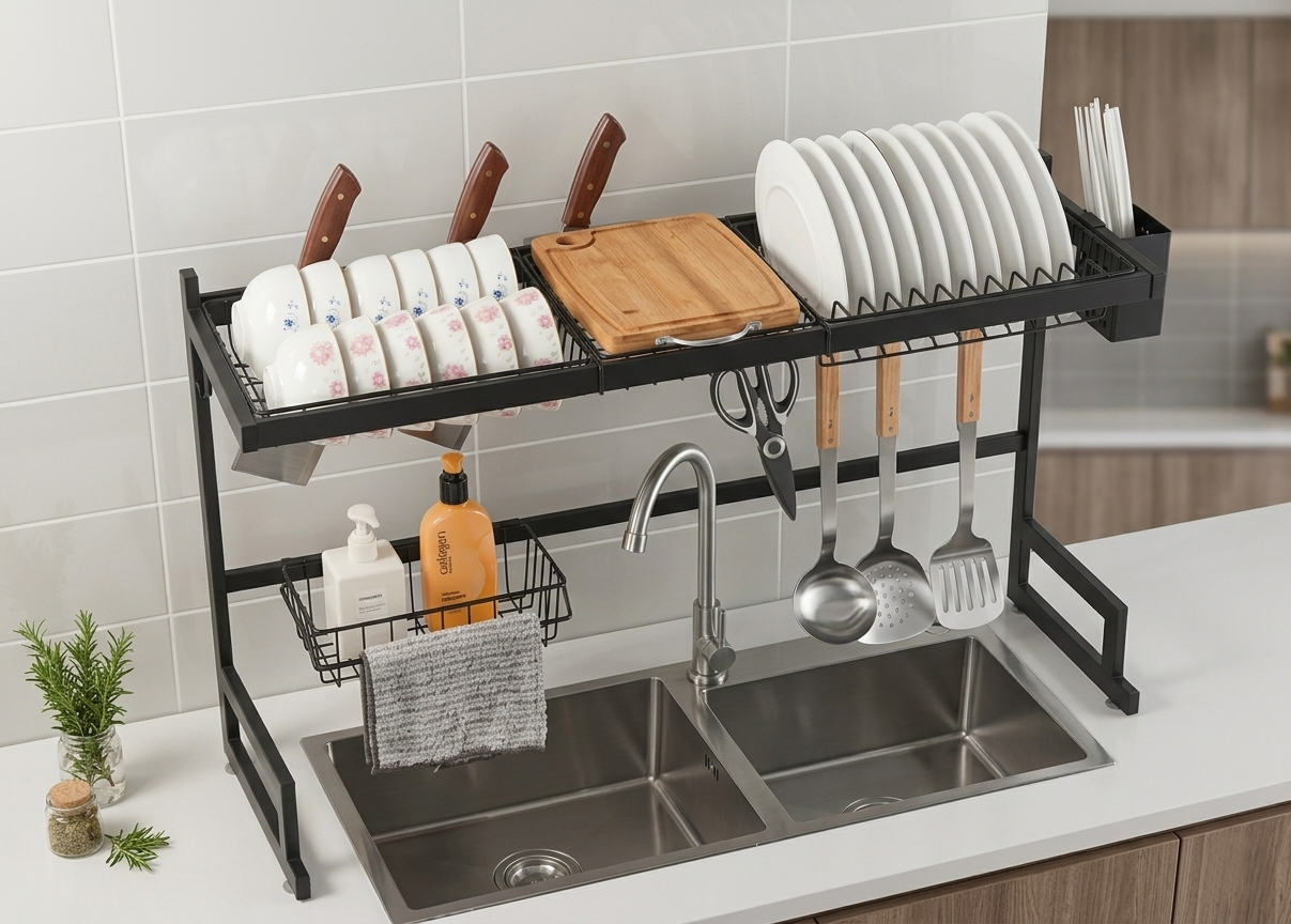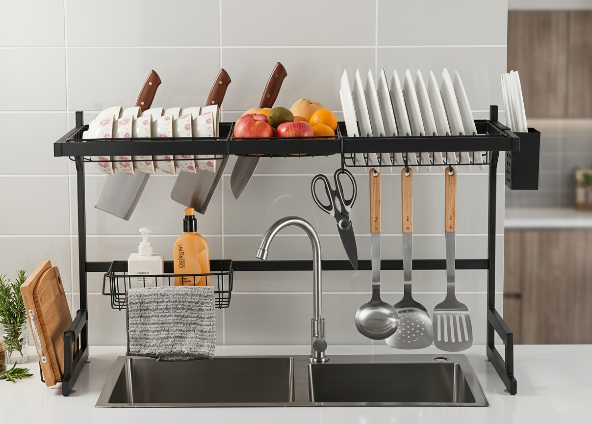 Tired of a cluttered kitchen counter and messy dish piles? The Over-Sink Kitchen Draining Rack is your ultimate space-saving solution. This versatile and heavy-duty rack is designed to sit perfectly over your sink, maximizing unused vertical space while keeping your kitchen organized and efficient.