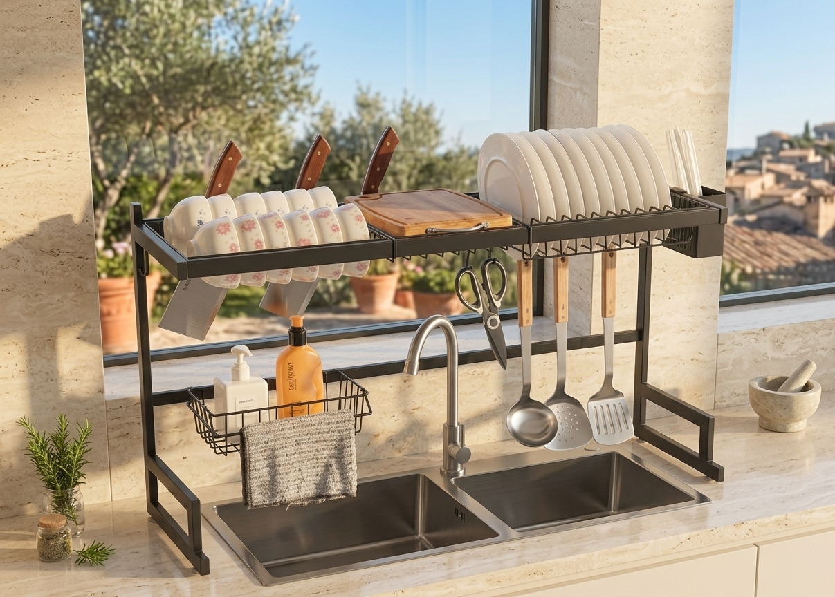 Transform Your Kitchen with this All-in-One Over-Sink Rack!