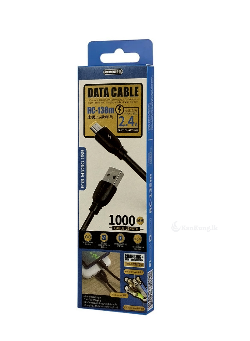 The Remax RC-138m Data Cable is designed for fast and efficient charging and data transfer. With a 2.4A fast charging capability, it ensures your devices power up quickly. The 1-meter length gives flexibility without being cumbersome, making it perfect for both home and travel use. This durable, tangle-free cable supports charging and data transmission simultaneously, ensuring you stay connected without interruptions. Compatible with most Micro USB devices, it features safe charging technology for peace of mind. Ideal for anyone looking for a reliable, high-speed charging solution!
