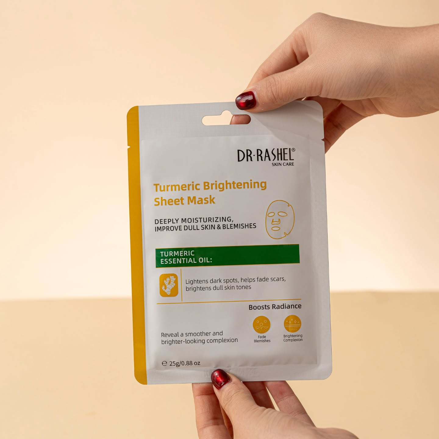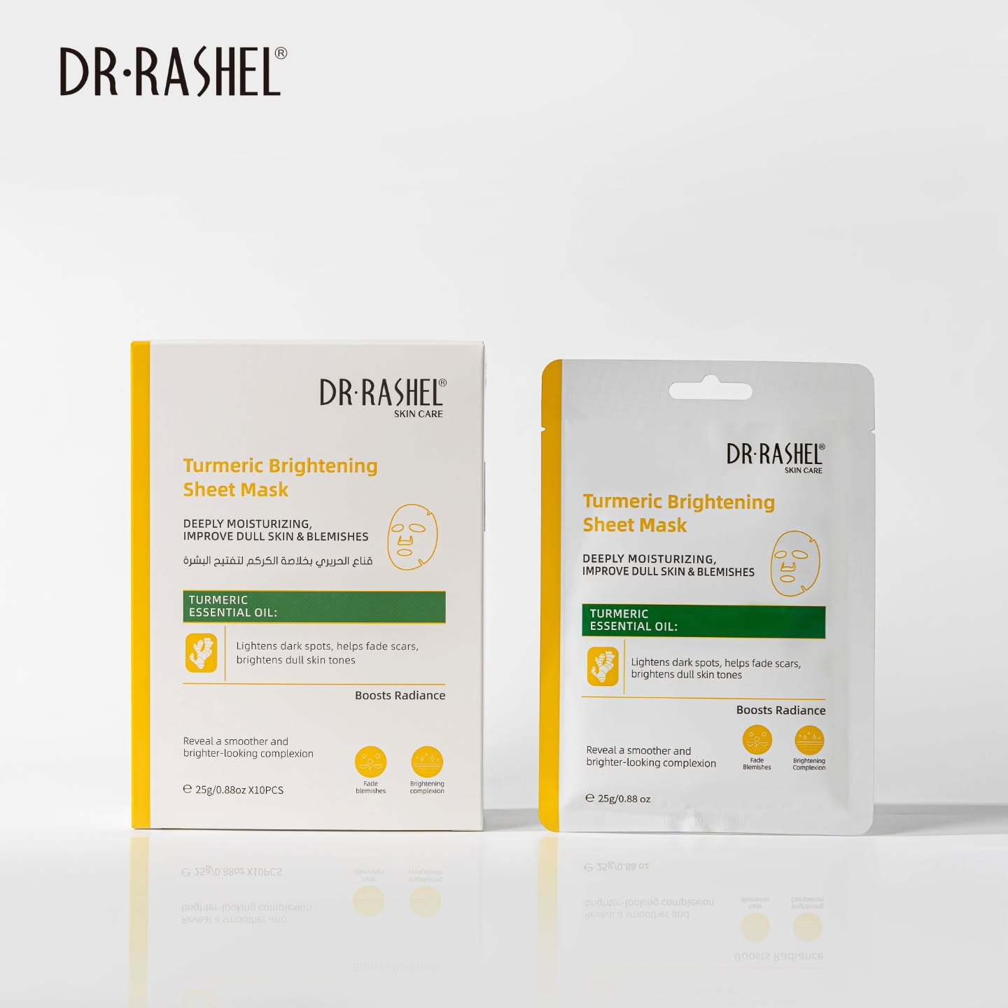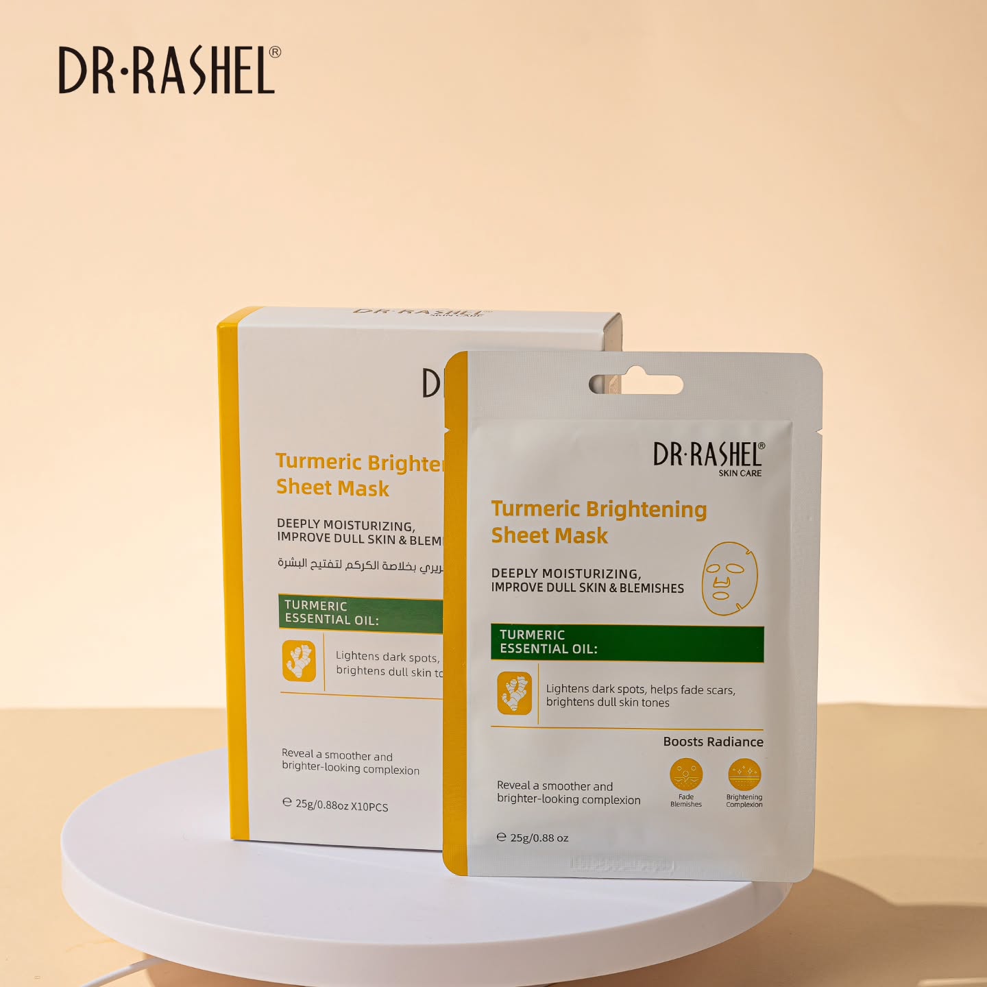 DR.RASHEL Turmeric Brightening Sheet Mask – Deep Moisturizing Face Mask for Dark Spots, Dull Skin & Blemishes (10 PCS Box)
