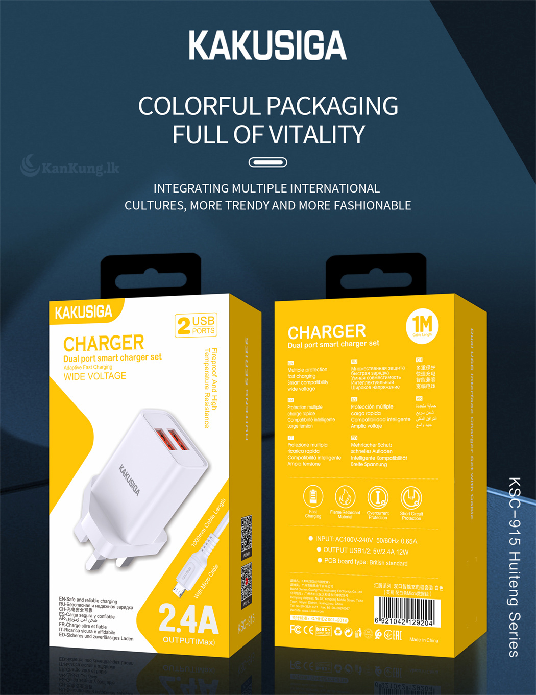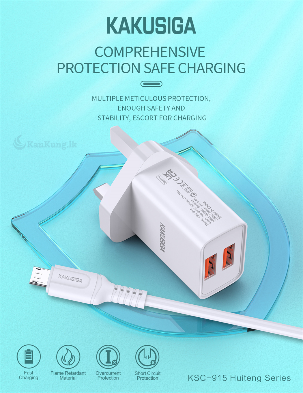 Engineered for safety, this charger comes with multiple layers of protection, including overcurrent, short circuit, and temperature resistance to safeguard your devices. Its flame-retardant design further ensures long-term durability. Enjoy fast and reliable charging with the Kakusiga Dual Port Smart Charger, your all-in-one charging solution.