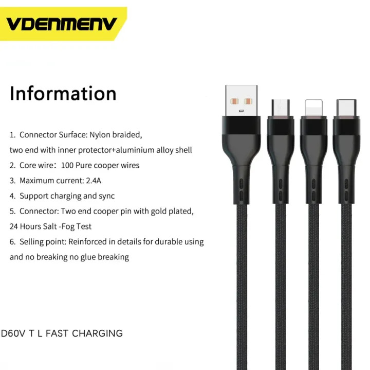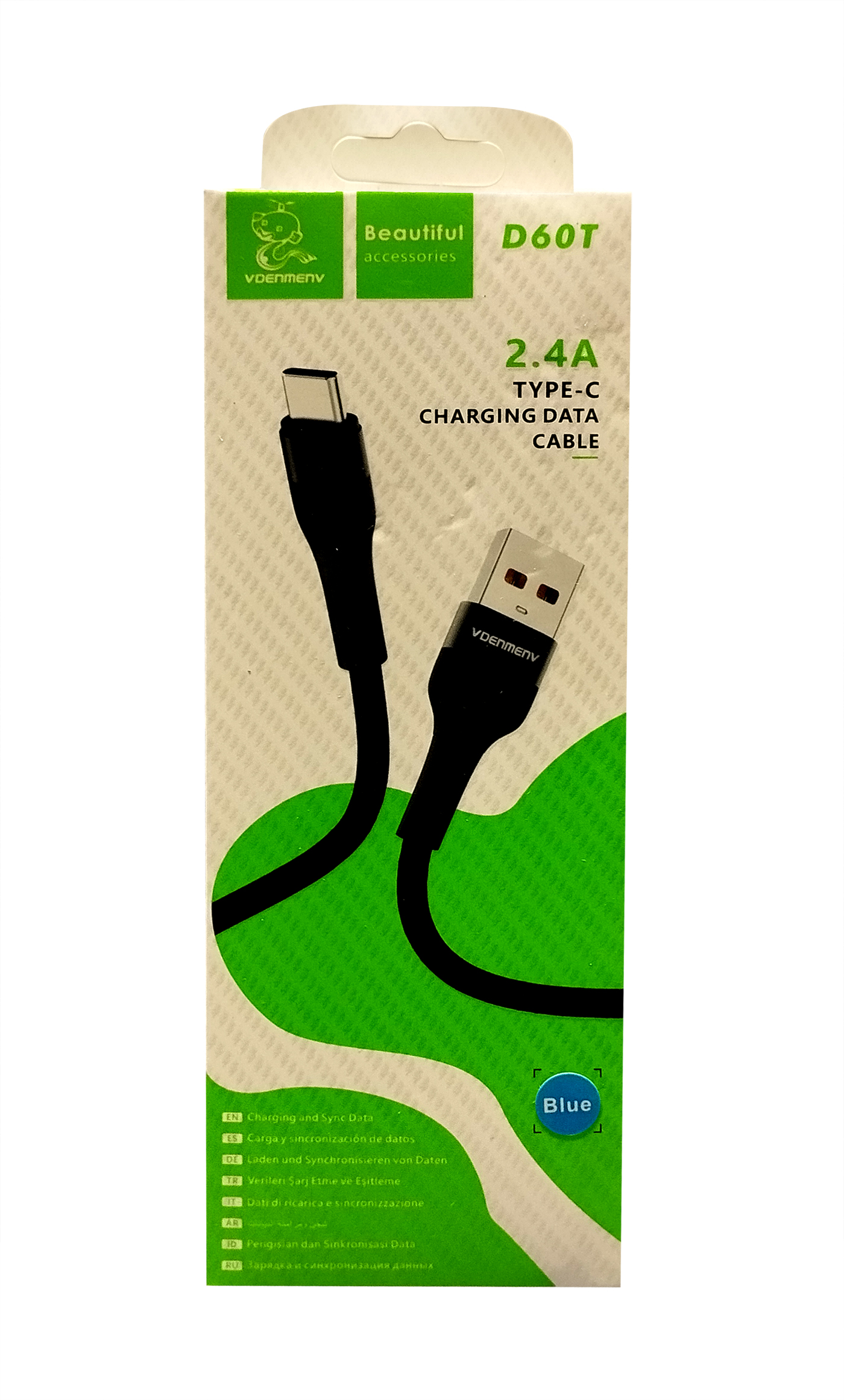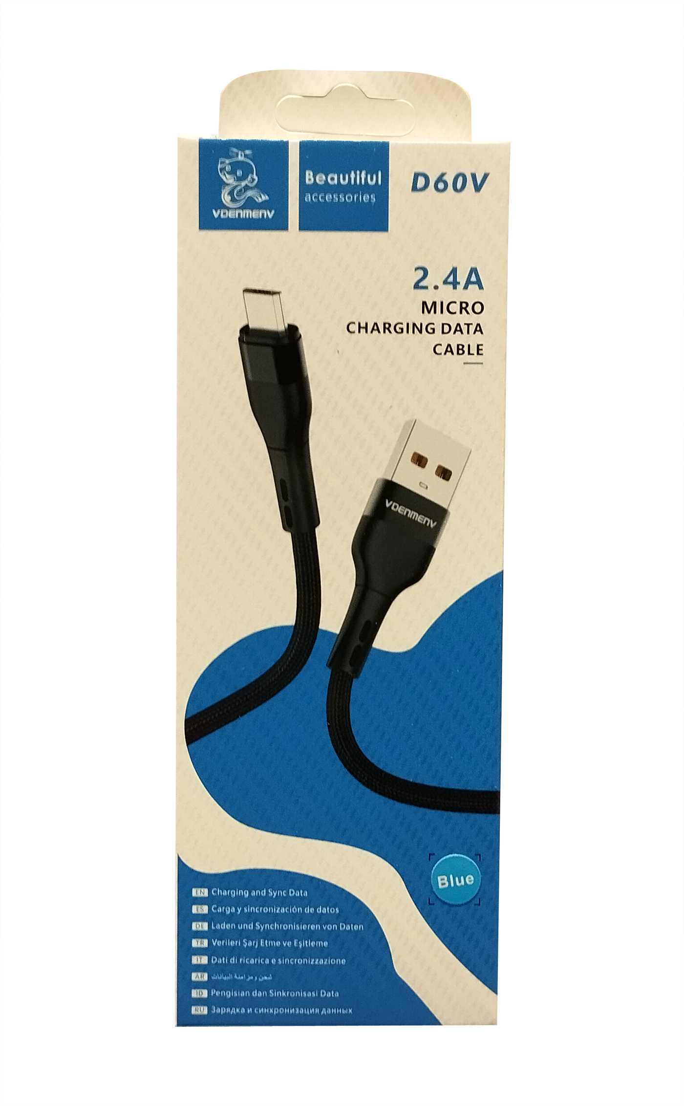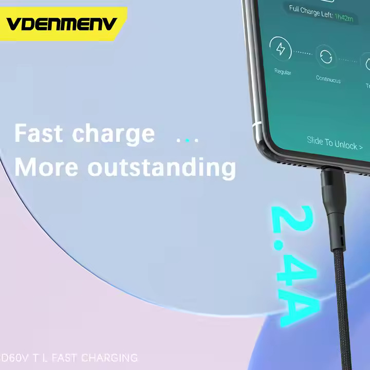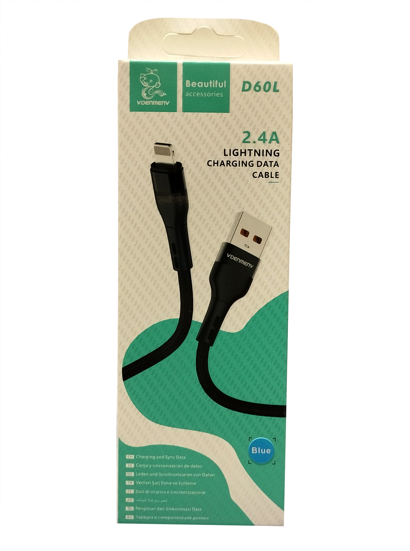 Charge and sync your devices efficiently with the VDENMENV 2.4A Charging Data Cable, designed for high-speed charging and reliable data transfer. Cable color : Blue. Available in three versions – Type-C (D60T), Micro (D60V), and Lightning (D60L) – these cables are compatible with a wide range of devices and provide fast, stable performance for everyday use.