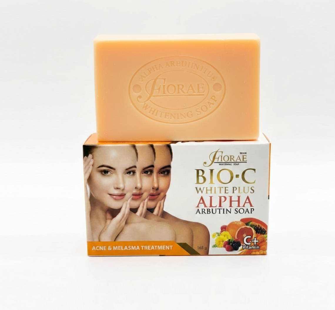 Fiorae Bio-C White Plus Alpha Arbutin Soap is specially formulated to cleanse, brighten, and improve overall skin appearance. Enriched with Alpha Arbutin and Vitamin C, this soap helps support an even skin tone while leaving your skin fresh, smooth, and radiant.