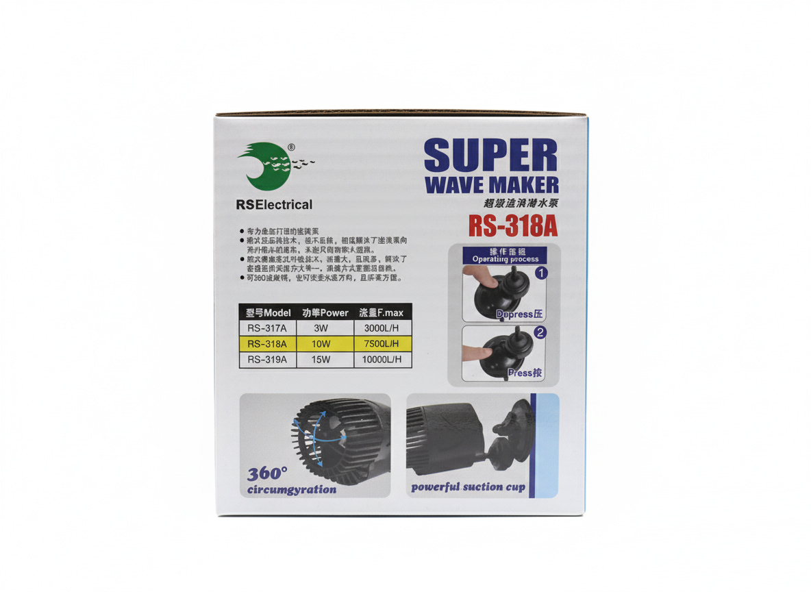 Bring natural water movement to your aquarium with the RS Electrical RS-318A Super Wave Maker. Designed for both freshwater and marine tanks fish tank, this high-quality wave maker ensures powerful circulation and better oxygen distribution for a healthier aquatic environment.