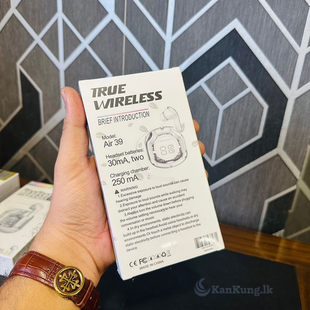 The earbuds come with a 250 mAh charging case that features an LED display, allowing you to monitor the battery status at a glance. Each earbud has a 30 mAh battery, providing hours of playtime for all-day use. Lightweight and easy to carry, these earbuds are perfect for on-the-go music lovers. Enjoy hands-free calls, music, and more with the compact and stylish Headst Air 39.