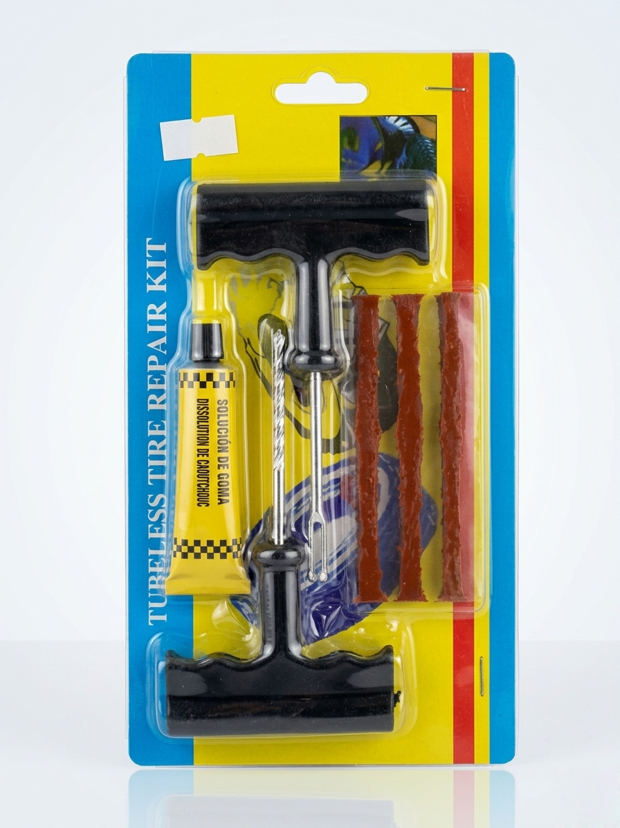 Package Includes: 1 x Reamer, 1 x Plugger, 1 x Rubber Solution, 3 x Puncture Repair Strips.