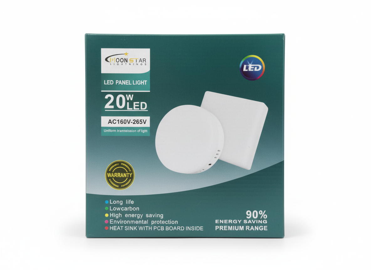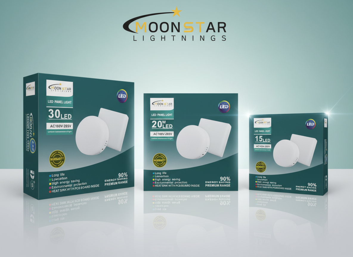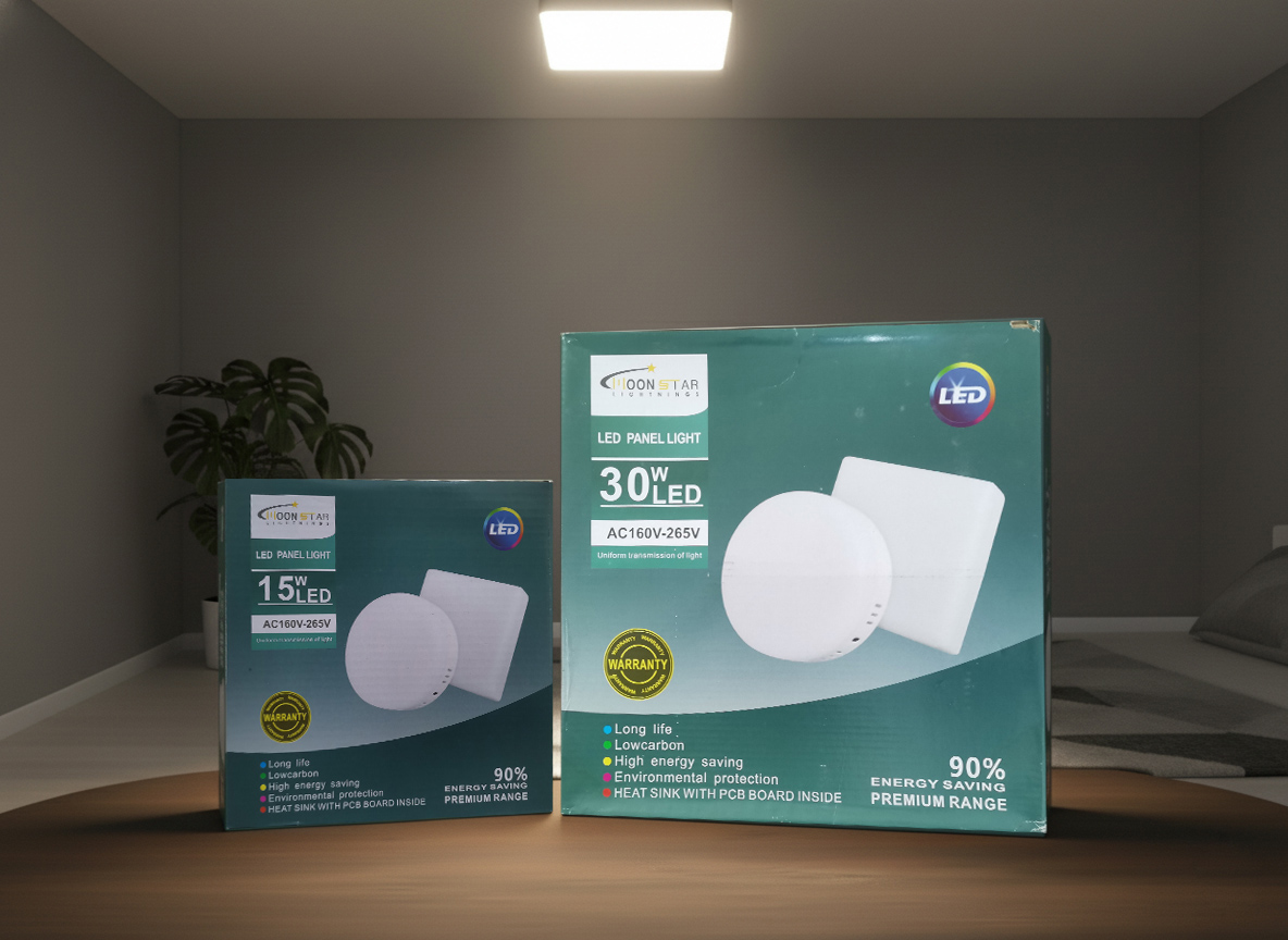 Available in 15W, 20W, and 30W models, these lights deliver powerful illumination while saving up to 90% energy compared to traditional bulbs. Ideal for homes, offices, shops, and fish tanks, the Moon Star Panel Light ensures uniform brightness with a sleek and stylish look.