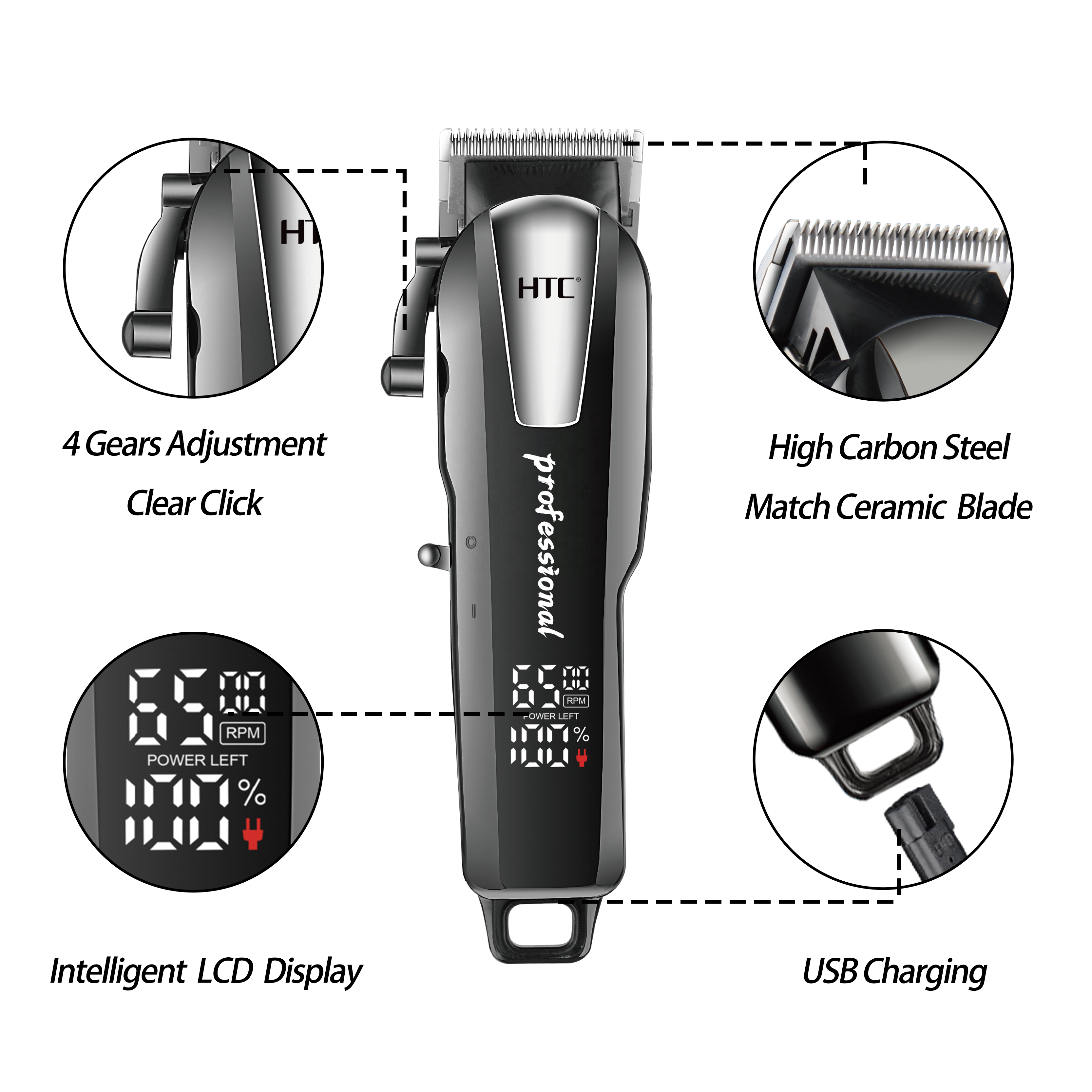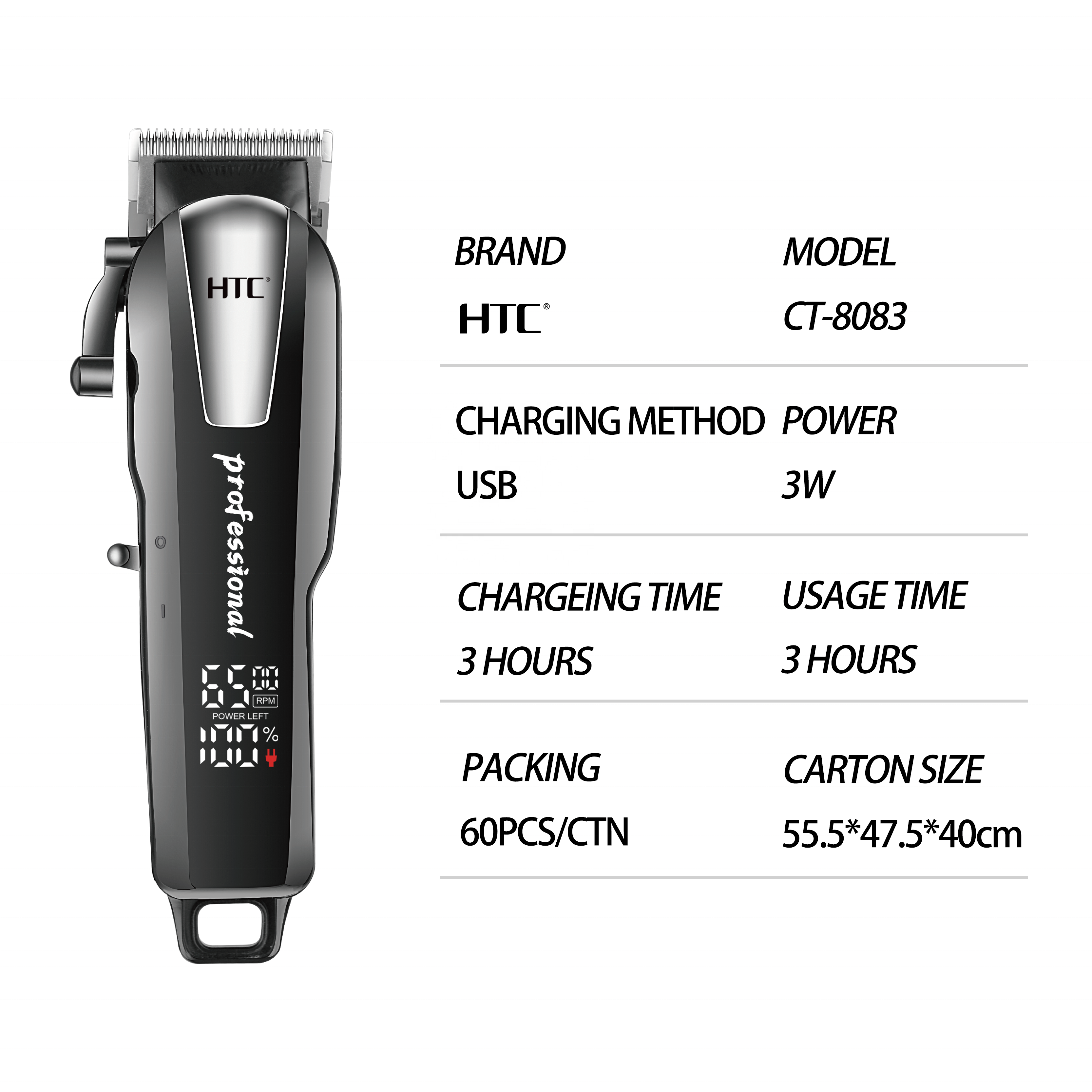 HTC CT-8083 Professional Hair Clipper & Trimmer – Ceramic Blade, LED Display, 2000mAh Rechargeable Battery