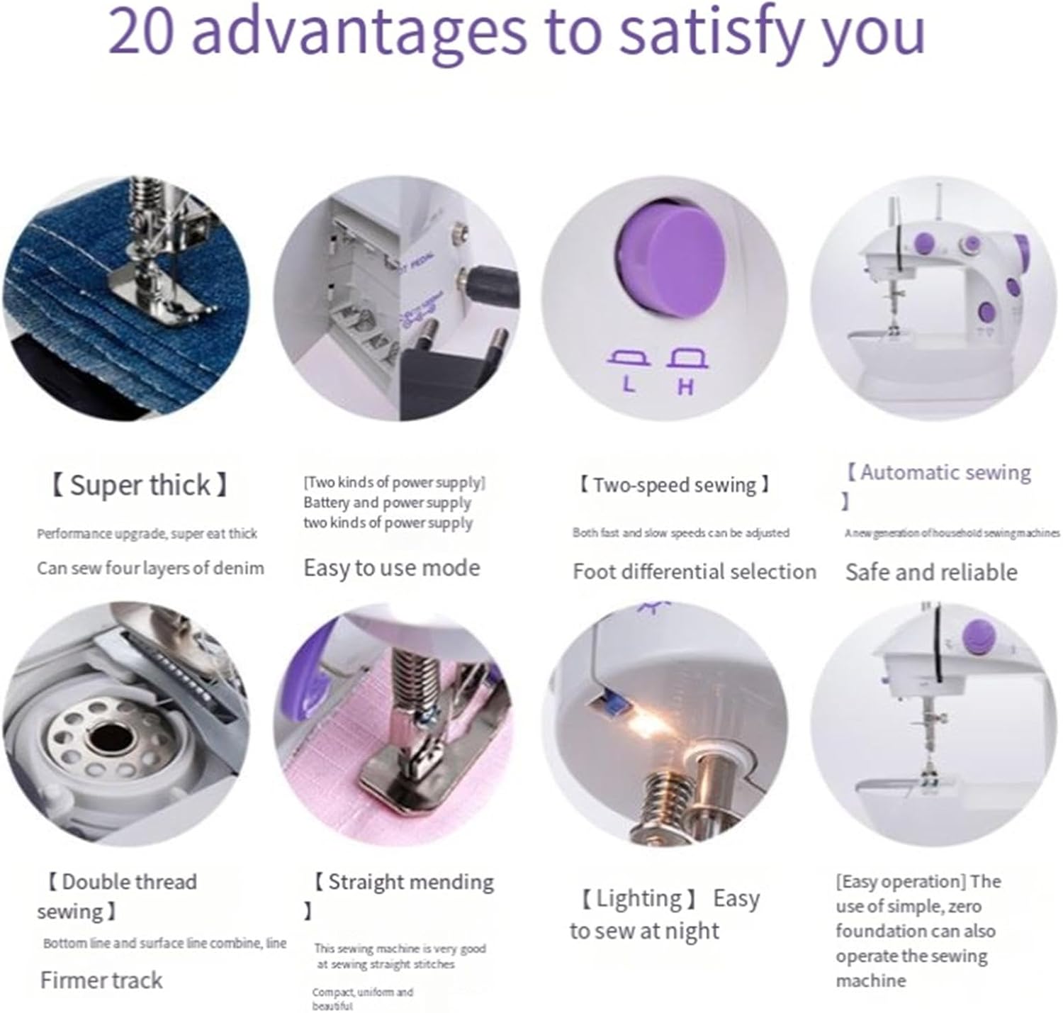 Mini Sewing Machine – Portable Electric Sewing Machine with Foot Pedal, Double Thread & 2 Speed Control