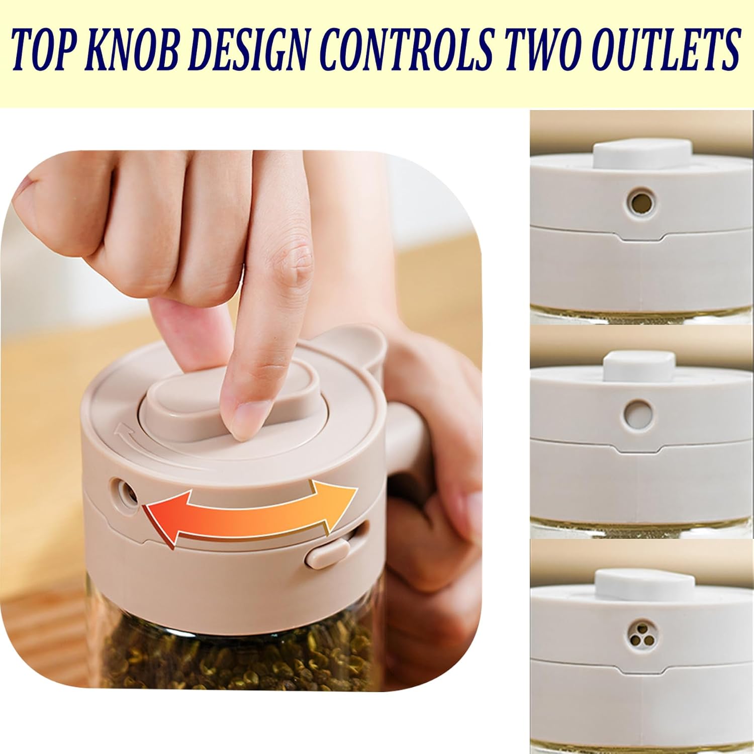 Upgrade your kitchen organization with the Multifunctional Spice Jar, designed for both convenience and style. This smart seasoning container allows you to rotate the top knob to adjust the discharge size — perfect for dispensing everything from fine salt to coarse chili flakes.