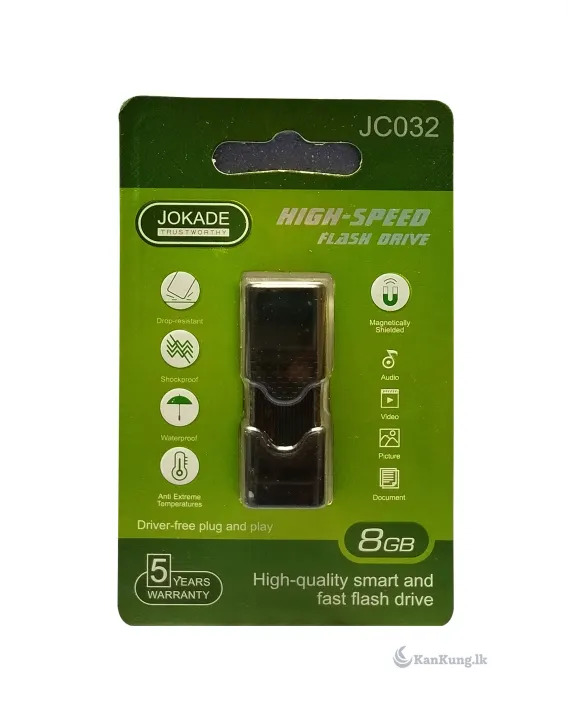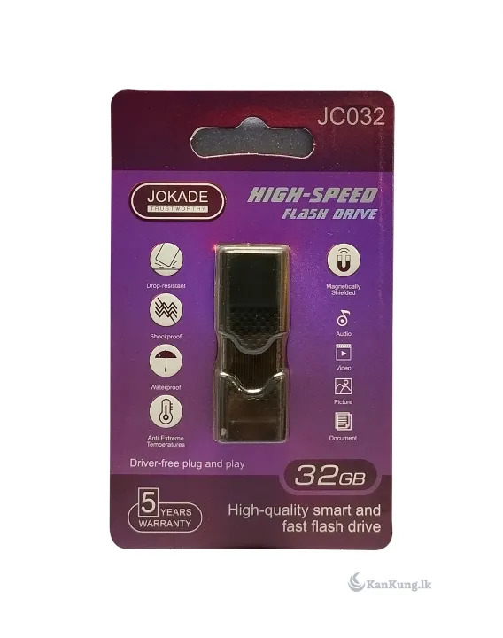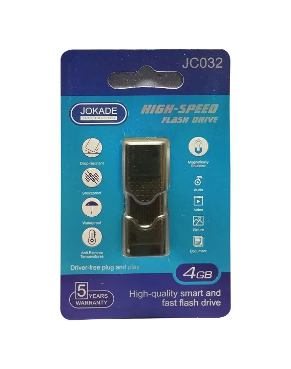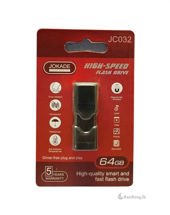 The JOKADE High-Speed Flash Drive is designed for durability and performance. With driver-free plug-and-play functionality, it is perfect for storing and transferring audio, video, pictures, and documents. Its features include drop resistance, shockproof design, waterproof capabilities, and protection against extreme temperatures. The magnetic shielding ensures your data stays secure. Backed by a 5-year warranty, this flash drive is a reliable solution for all your data storage needs.