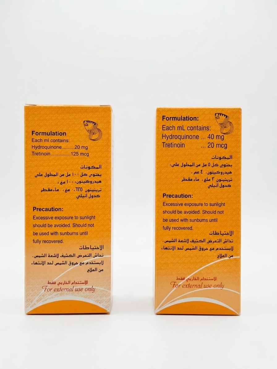 Each ml contains Hydroquinone and Tretinoin, known for their effective skin renewal and brightening properties.