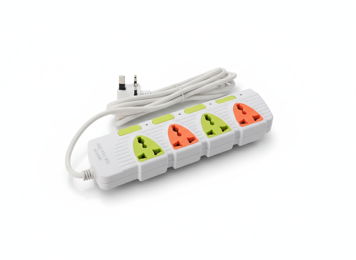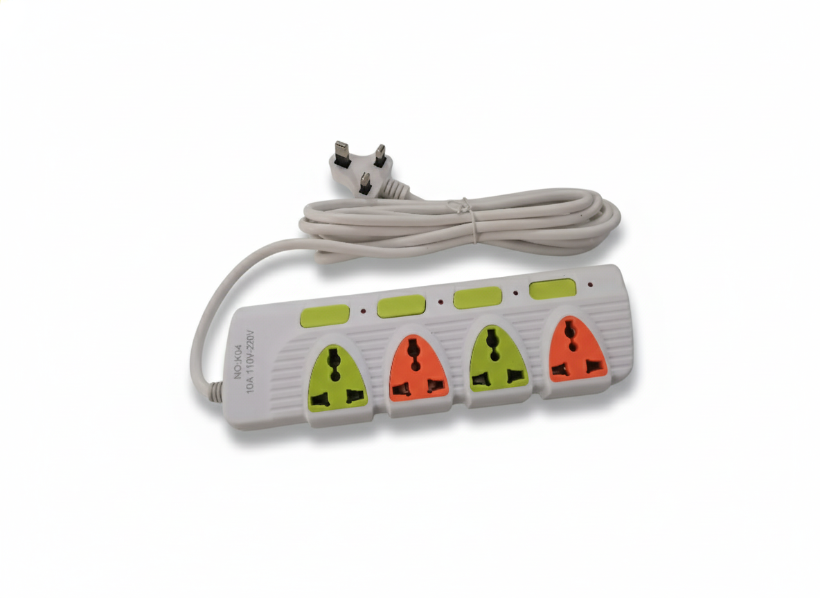 Universal Extension Cord 4 Socket – 3 Meter Cable | Surge Protected Multi-Plug | 10A Power Strip for Home & Office